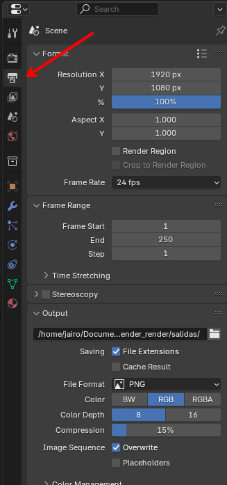 1. Set the output path for the render.